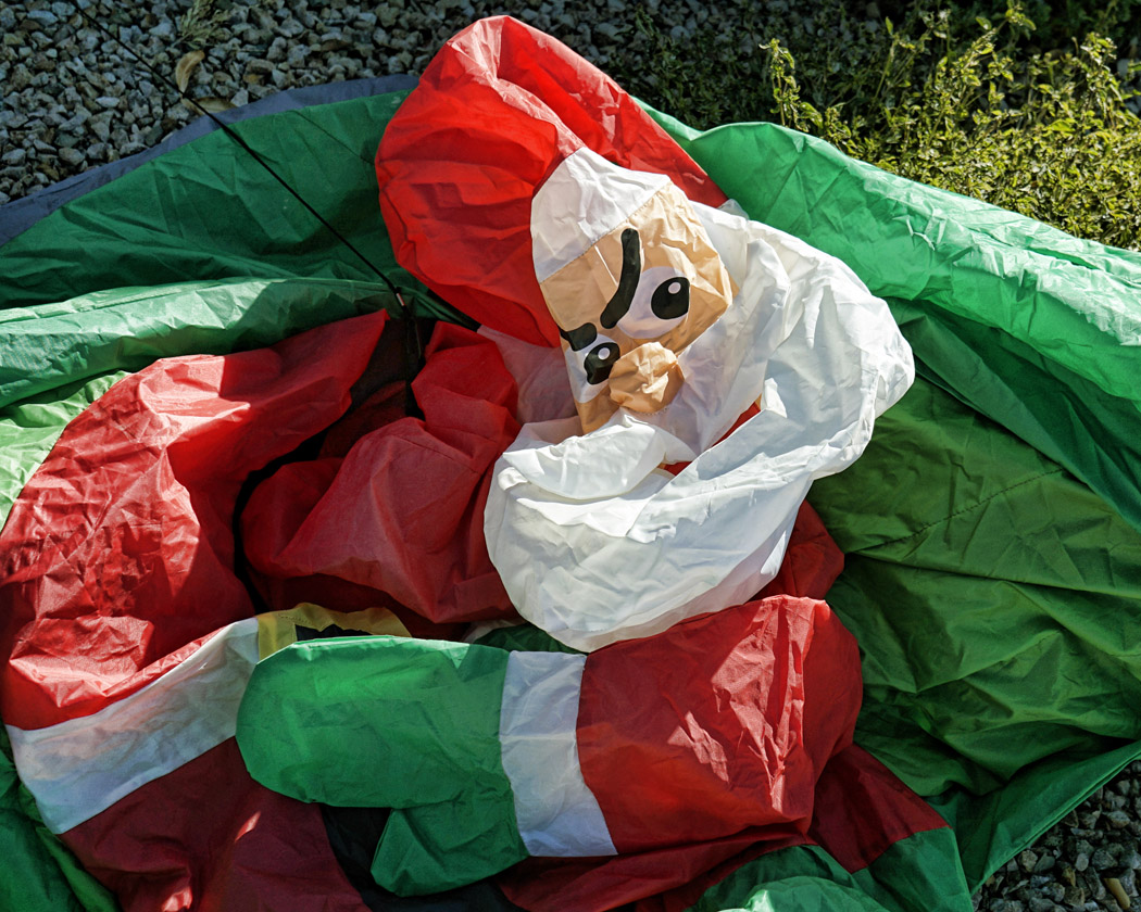 when the sun comes up and these bobbing nylon Santa’s deflate are we brought back